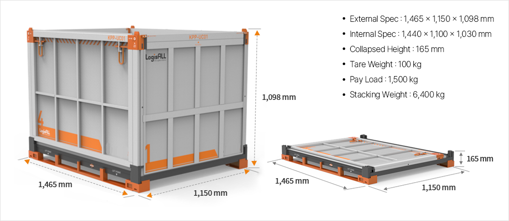 FOLDPAC是可再使用的折叠式铁材IBC(Intermediate Bulk Container)。 可有效运输和保管液体产品、橡胶产品及中小型机器配件的物流器械,最适合于装载集装箱,适合于全球进出口。 通过可更有效地运输货物的FOLDPAC,在物流器械回收和管理方面,可无负担地构建全球供应链。
