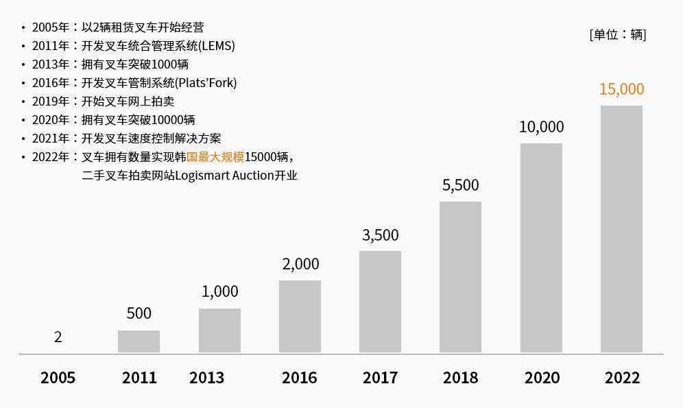 叉车拥有量位居全国首位,为全国2000多家客户公司提供装备租赁及资产装备管理服务。