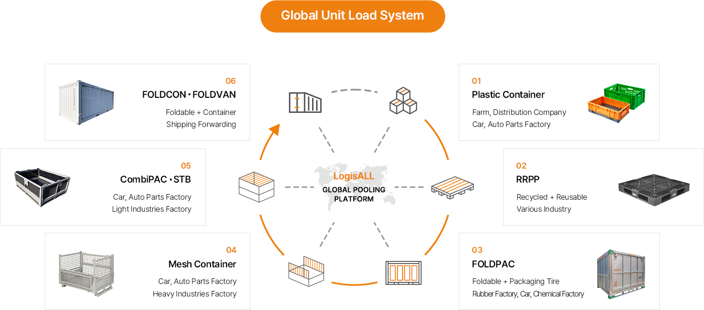 随着因洲际贸易不平衡导致的空物流器械发生率和未回收率不断提高,货主的费用负担也不断加重。LogisALL的全球运输服务促使物流器械的供需和回收、货物追踪变得顺畅,将对韩国成为全球物流中心起到很大作用。从韩国出发的物流器械环绕全世界重新回到韩国,破损的物流器械将重新诞生为新的物流器械。在全球范围内实现不断的物流资源循环。