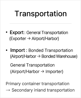 Our patented bonded warehouse located within Incheon Namdong Industrial Complex is adjacent to Incheon Harbor and Incheon Airport, offering cost-effective storage fees compared to other airport/harbor facilities.